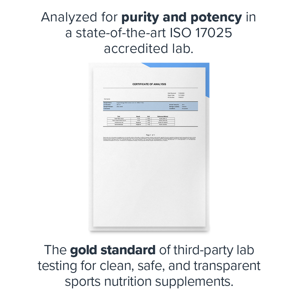 - Tested for purity and potency in a state-of-the-art, ISO 17025-accredited third-party laboratory to ensure safety, quality, and effectiveness.