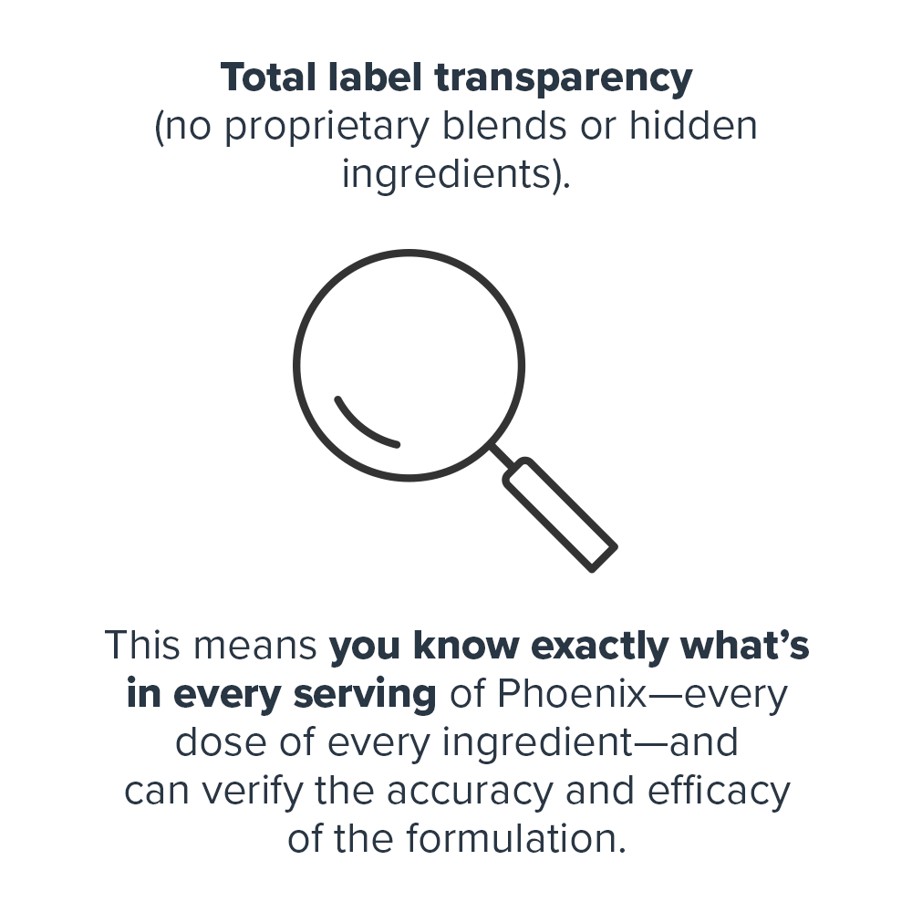 - Phoenix’s formula is backed by 44 peer-reviewed scientific studies, validating its ingredients and clinically effective doses.