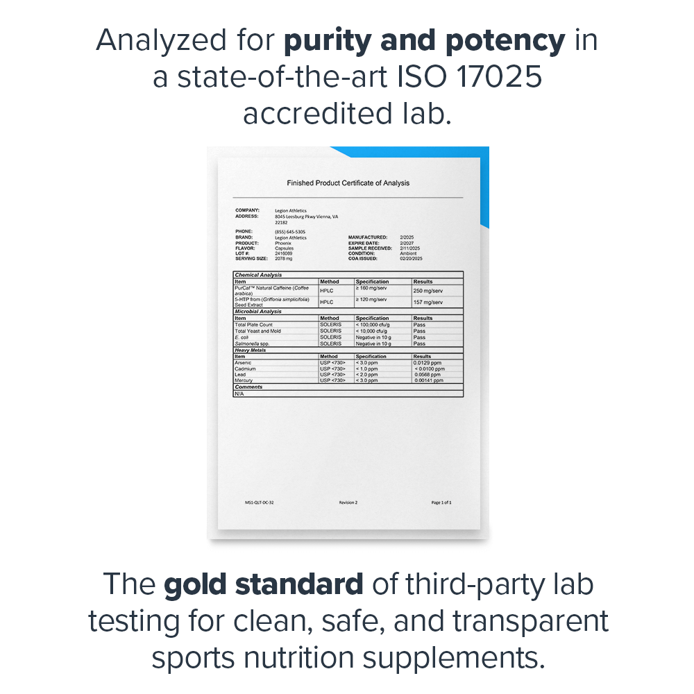 Phoenix is tested in a state-of-the-art, ISO 17025-accredited third-party laboratory to screen for heavy metals, microbes, allergens, and other contaminants, ensuring it meets strict FDA purity and safety standards.