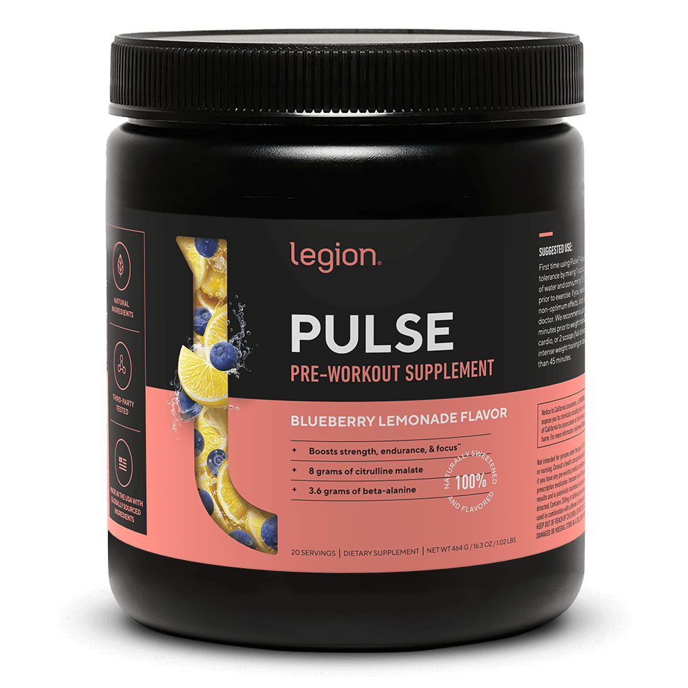 LEGION PULSE Pre Workout Drink – Blueberry Lemonade Flavor | Caffeine Free, Stim Free Formula for Clean Energy, Focus & Endurance
