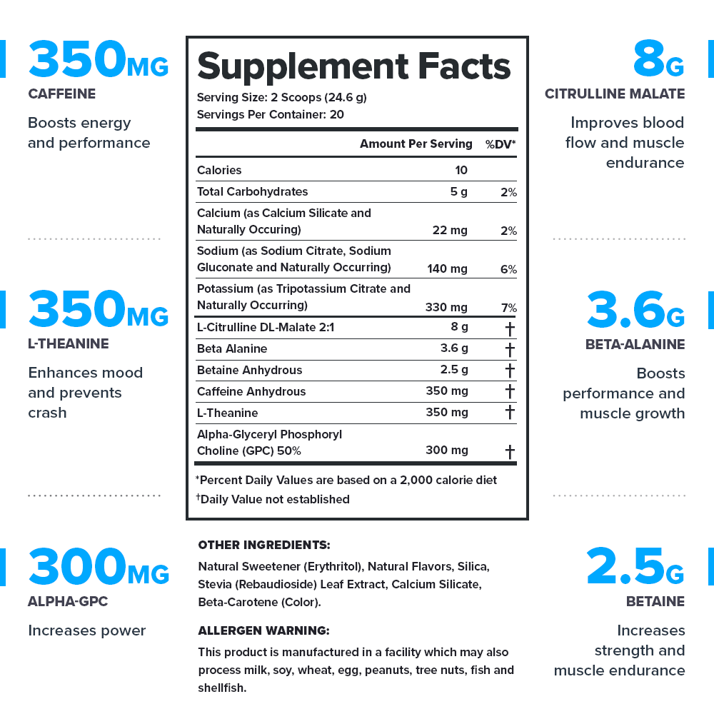 Discover the only naturally sweetened and flavored, stimulant-free pre-workout supplement formulated with clinically effective doses of 4 scientifically proven ingredients designed to boost strength, enhance stamina, and reduce fatigue — all without jitters or post-workout crashes.