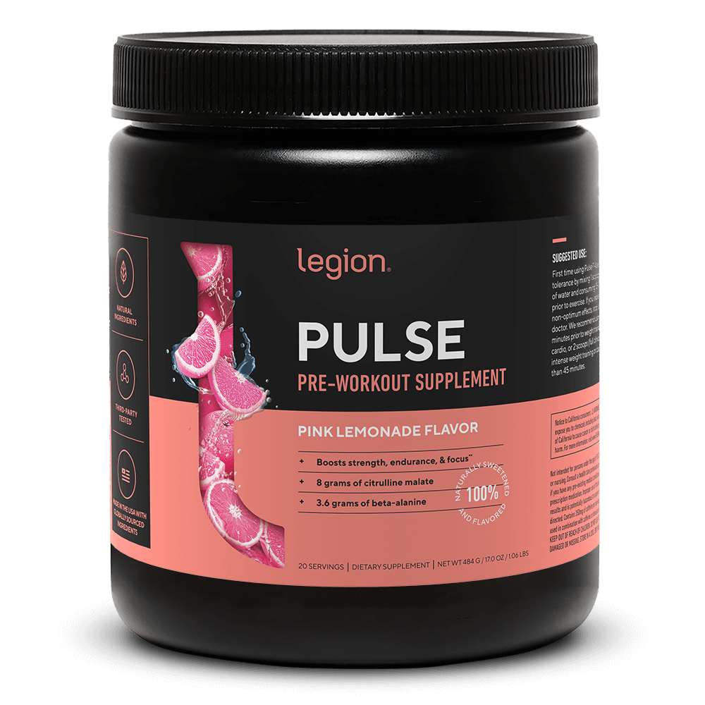 LEGION PULSE Pre Workout Drink – Pink Lemonade Flavor | Caffeine Free, Stim Free Formula for Clean Energy, Focus & Endurance