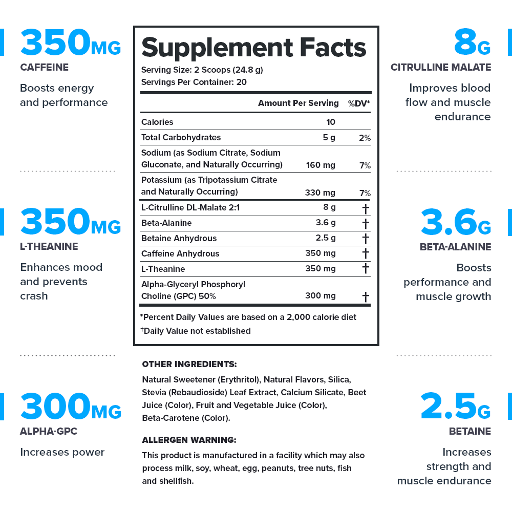 Discover the only naturally sweetened and flavored, stimulant-free pre-workout supplement formulated with clinically effective doses of 4 scientifically proven ingredients designed to boost strength, enhance stamina, and reduce fatigue — all without jitters or post-workout crashes.