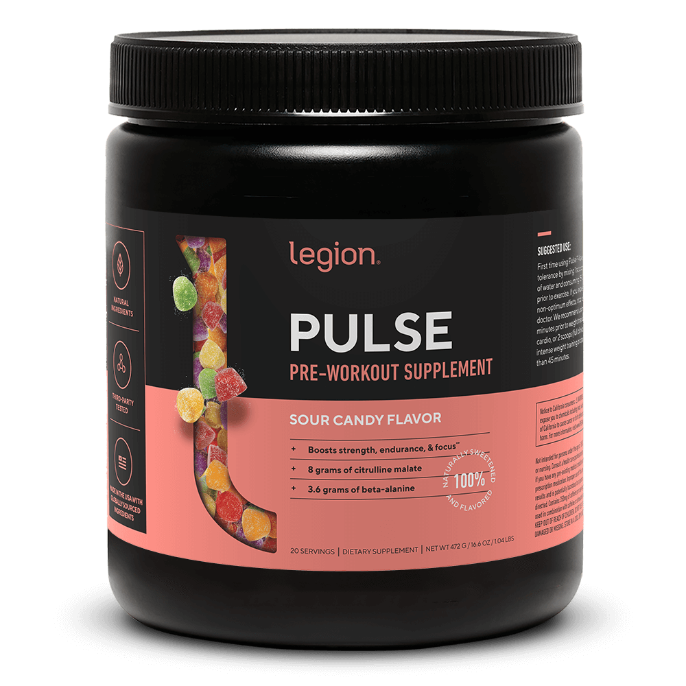 LEGION PULSE Pre Workout Drink – Sour Candy Flavor | Caffeine Free, Stim Free Formula for Clean Energy, Focus & Endurance