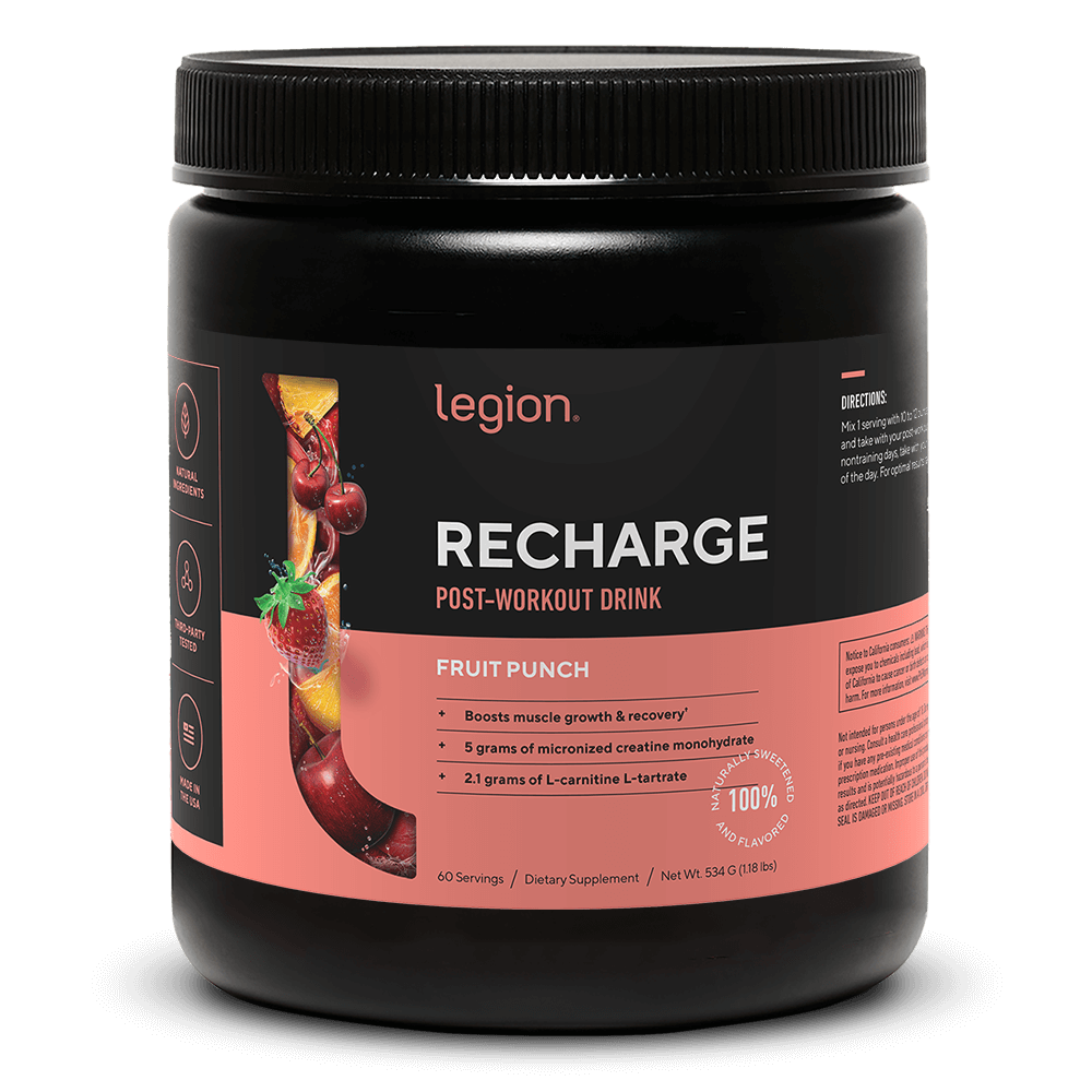 LEGION RECHARGE Post Workout Drink – Fruit Punch Flavor | Includes Creatine for Muscle Recovery, Strength & Endurance