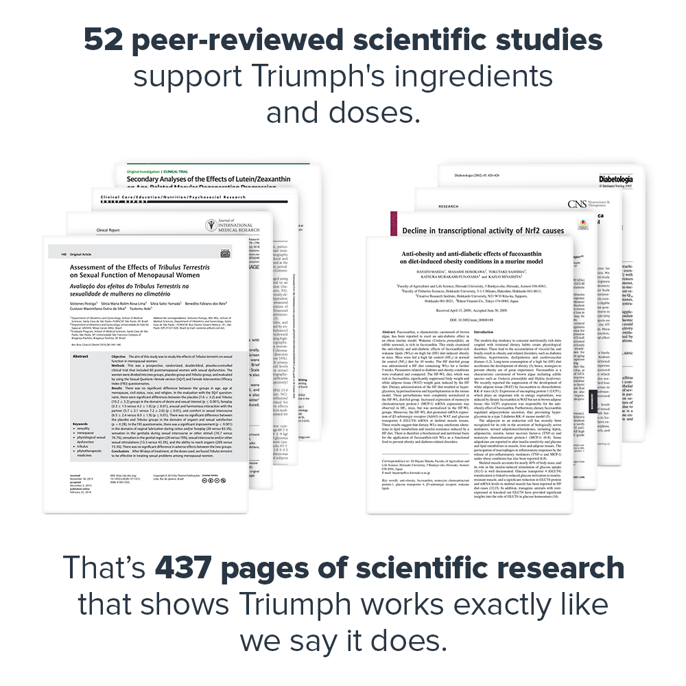 - Backed by 52 peer-reviewed scientific studies validating Triumph’s ingredient combinations and dosages