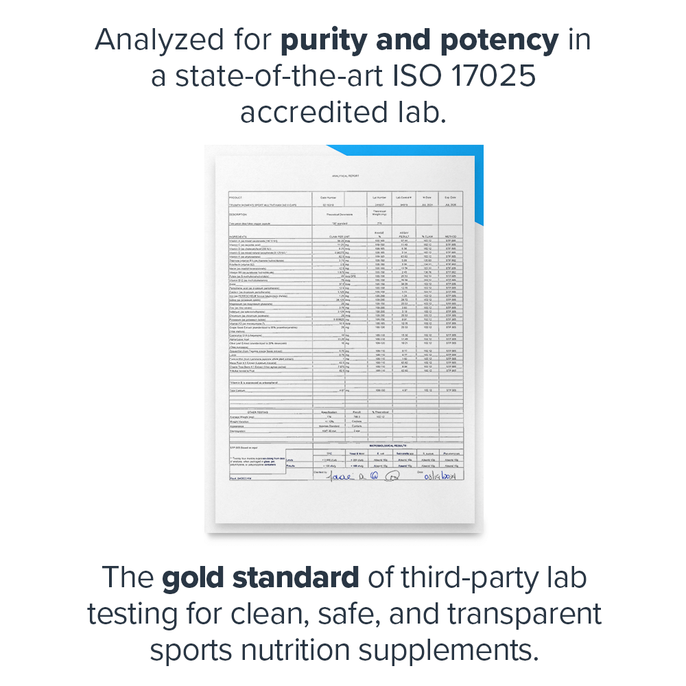 Triumph undergoes rigorous testing in a state-of-the-art, ISO 17025-accredited third-party laboratory to screen for heavy metals, microbes, allergens, and other contaminants, ensuring full compliance with FDA purity and safety standards.
