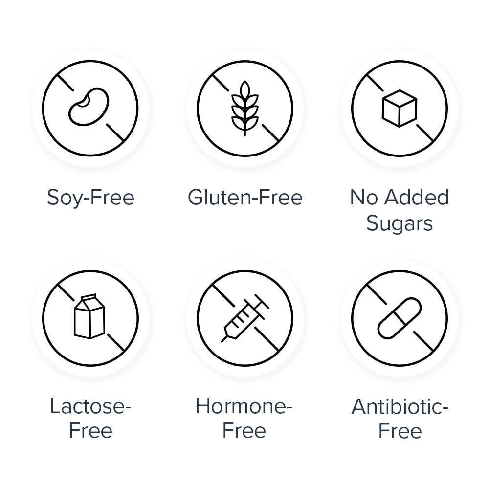 - Naturally sweetened and flavored — with no added sugars, soy, gluten, lactose, artificial sweeteners, flavors, food dyes, fillers, or any other unnecessary additives.