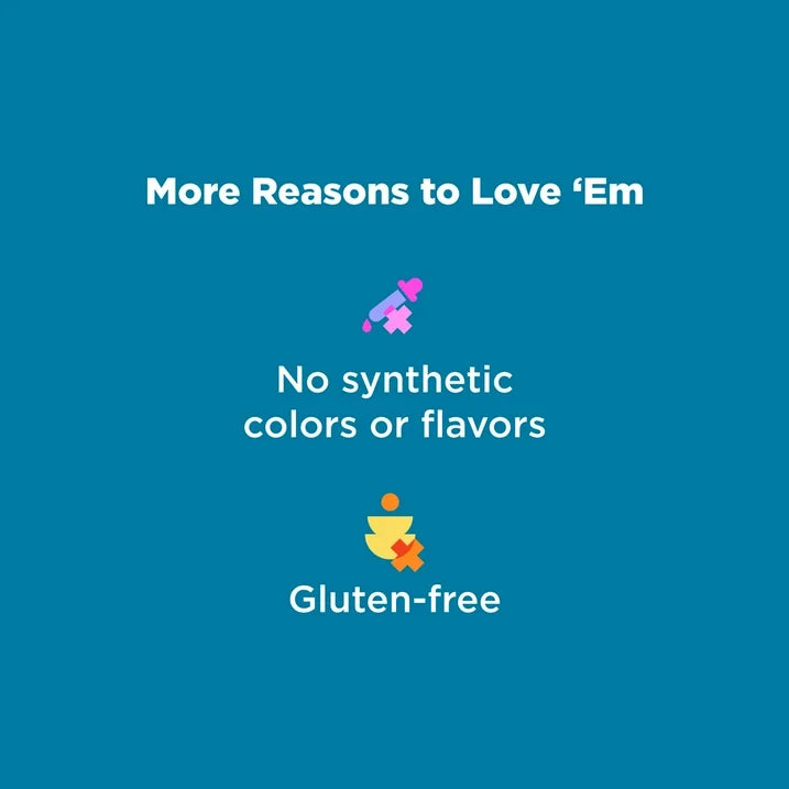 - For ages 7 and up: chew 2 gummies per day as needed. Chew thoroughly before swallowing; no food or water required